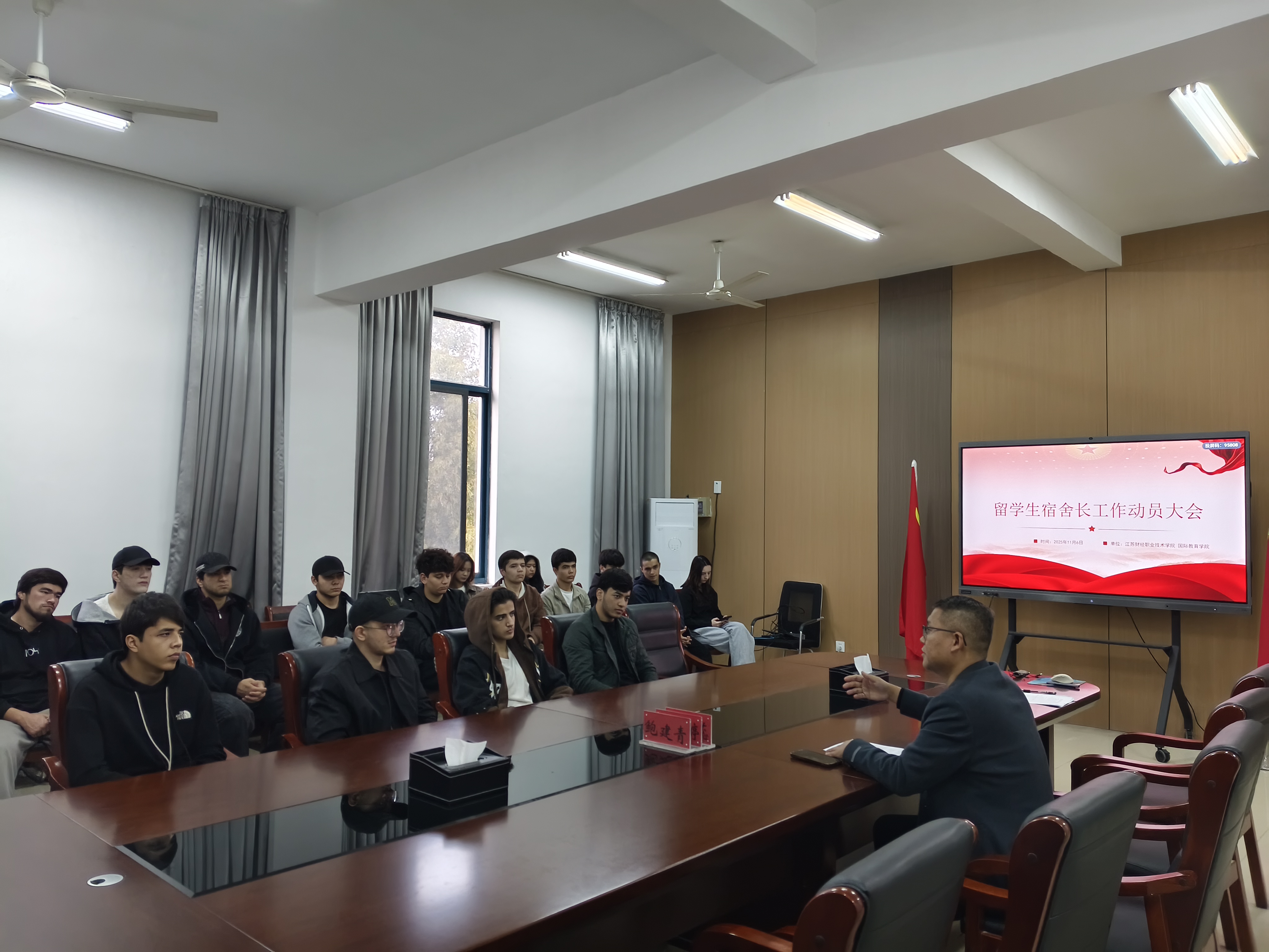 为加强留学生教育与管理,营造安全、和谐的校园氛围,11月7日下午四点,国际教育学院于笃行楼520会议室举行留学生宿舍长动员会。国际教育学院院长冯伟、留学生辅导员王思稳、全体留学生宿舍长参加会议。