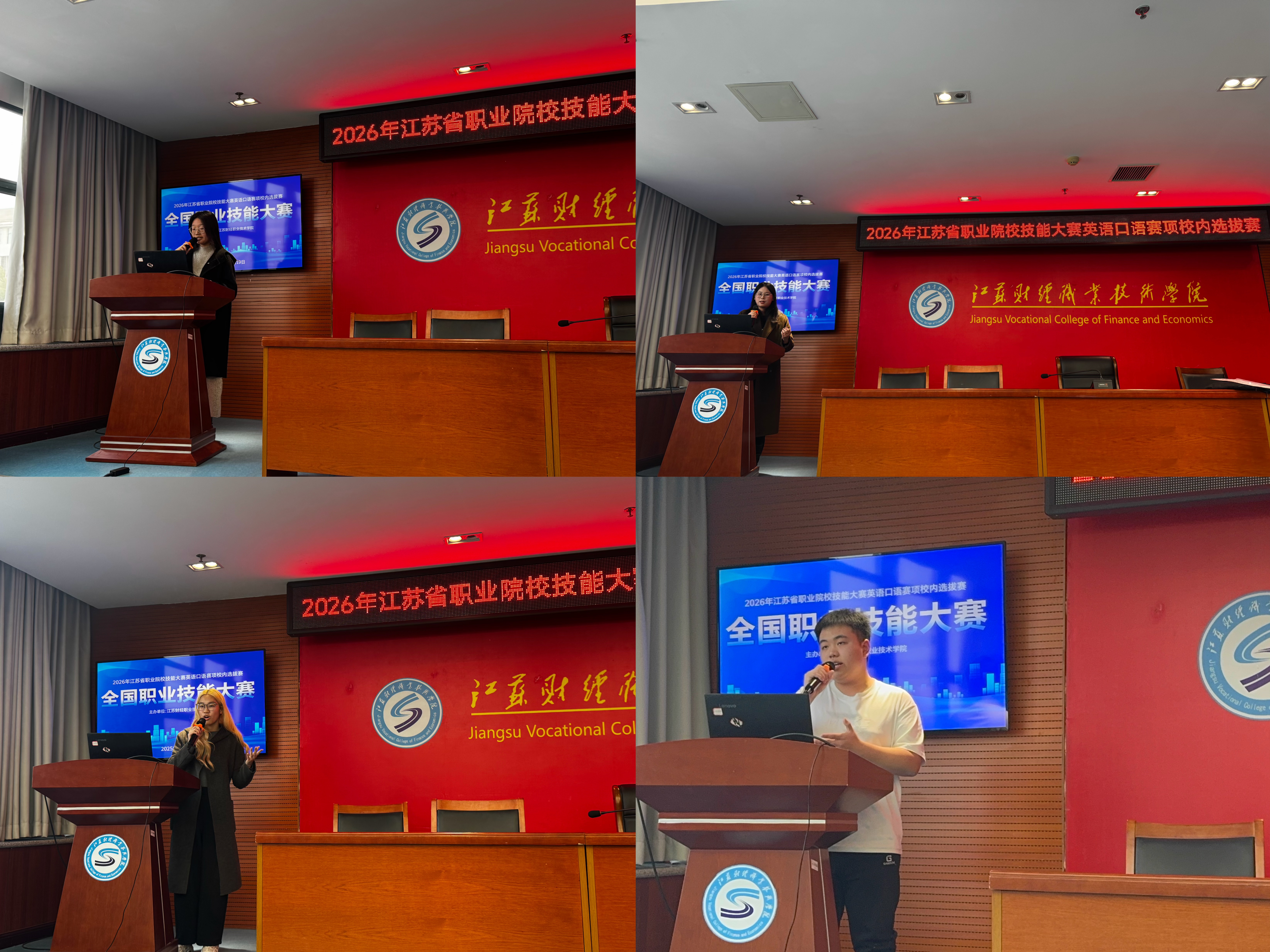 为浓厚校园英语学习氛围,提升学生英语口语表达与综合应用能力,选拔优秀选手备战2026年江苏省职业院校技能大赛高职英语口语赛项,近日,由商务英语学院(国际教育学院)主办的2026年英语口语赛项校内选拔赛在图书馆220人会议厅圆满落幕。