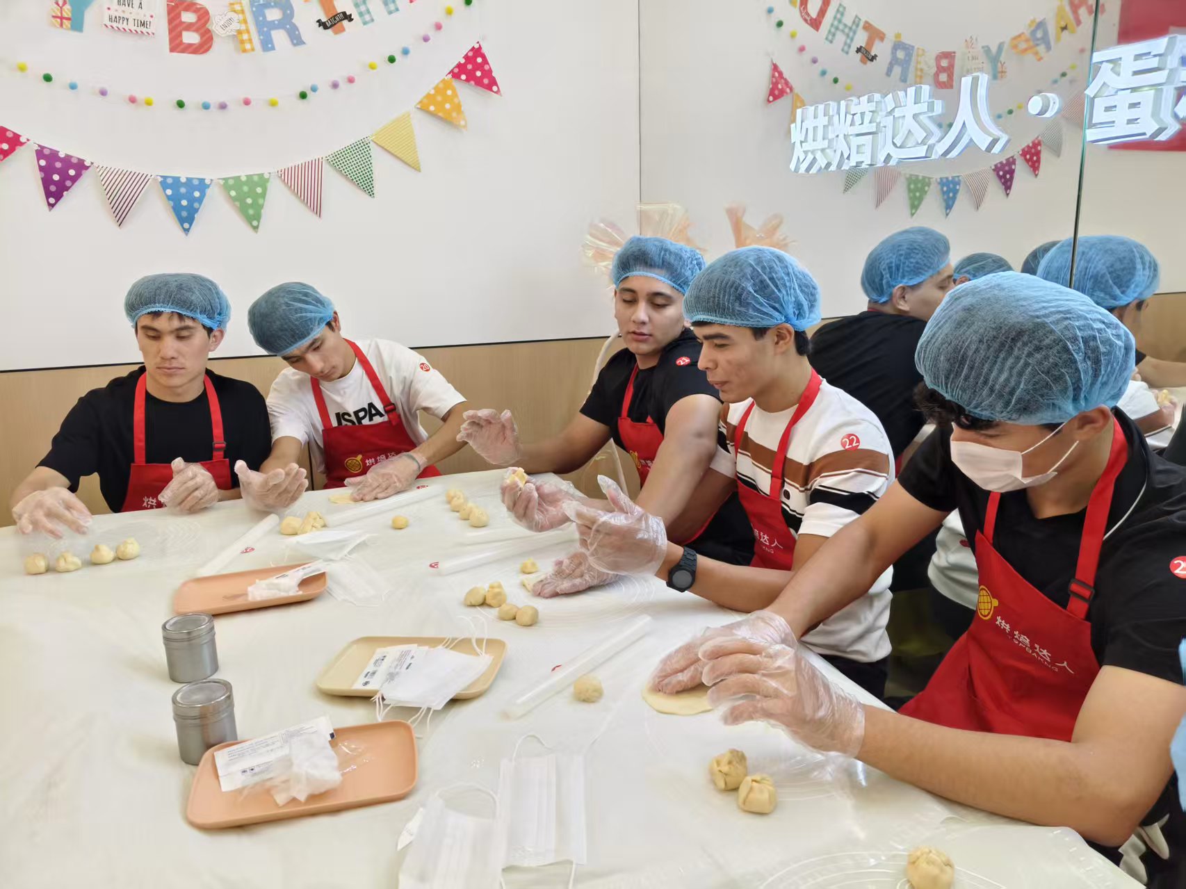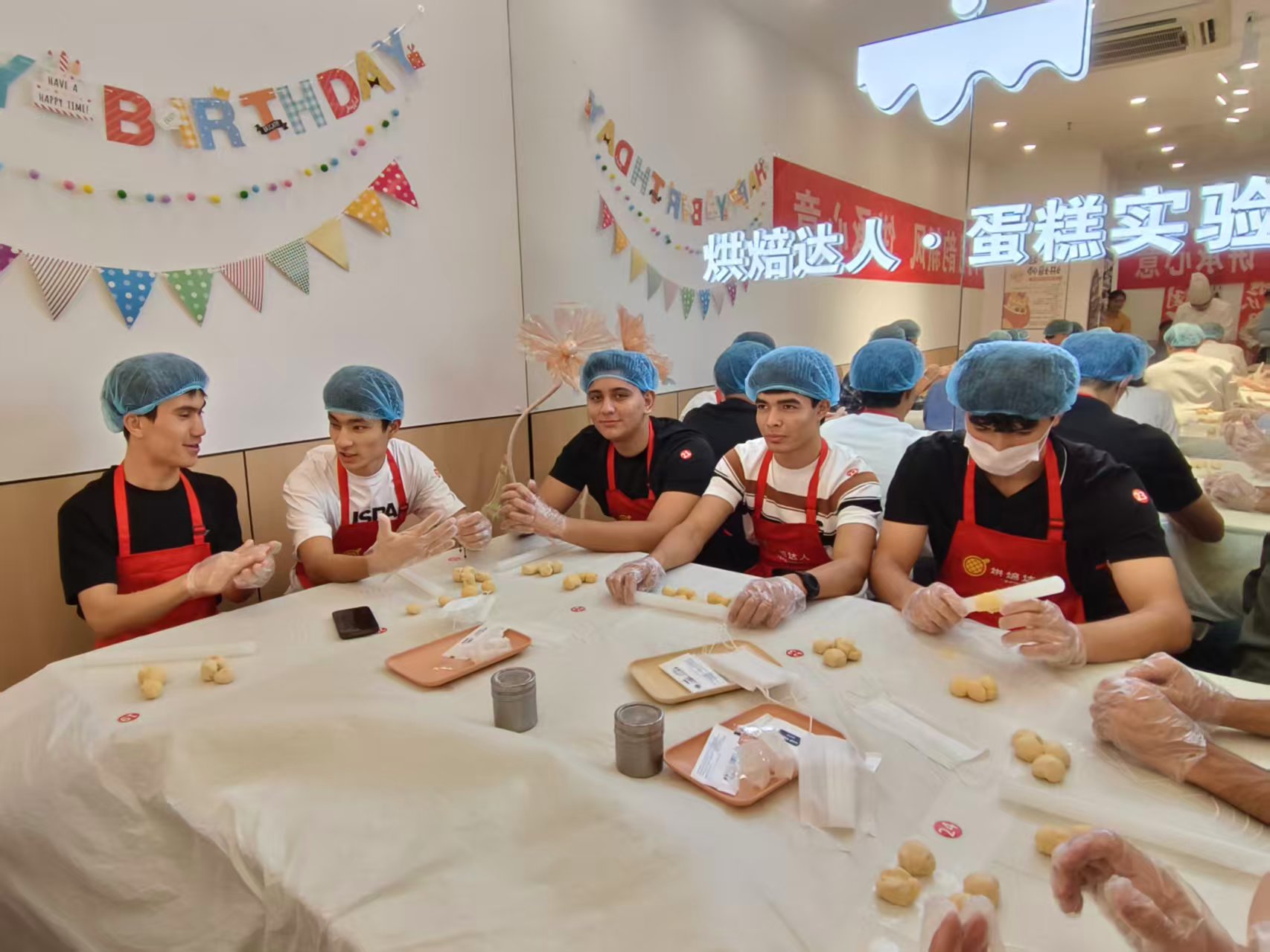 在专业面点师的耐心指导下,活动进入了最令人期待的环节——亲手制作月饼。留学生们对中国传统月饼的制作过程表现出浓厚的兴趣。从和面、擀皮,到包入豆沙、莲蓉等丰富馅料,再到亲手制作的、饱含情意的月饼被送入烤箱,每一个步骤他们都学得认真,做得仔细。学校领导们也融入其中,与留学生们一边探讨制作技巧,一边交流各自国家的节日习俗,现场气氛温馨而热烈。
