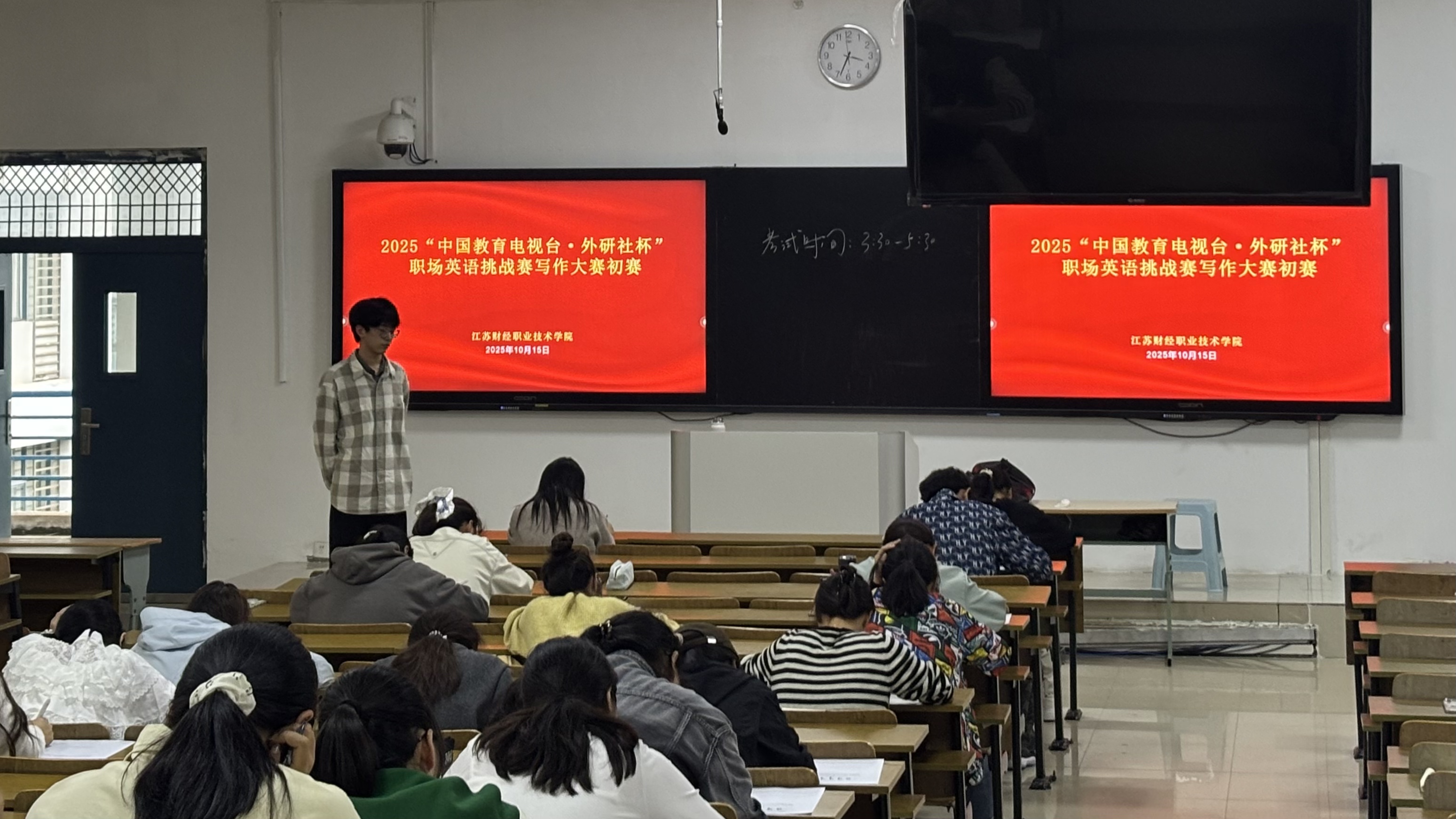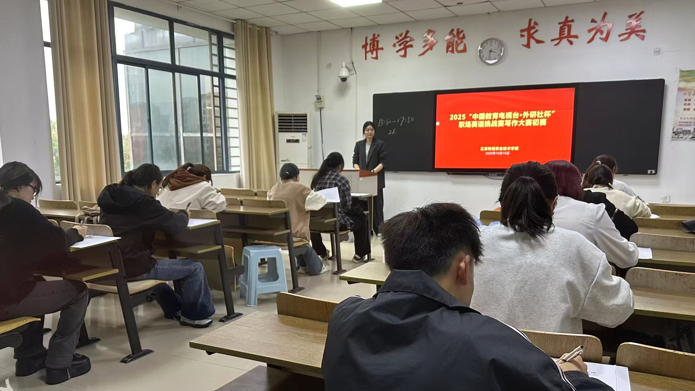 10月15日下午,2025“中国教育电视台·外研社杯”职场英语挑战赛写作比赛初赛在文翰楼301、文澜楼408成功举行,来自全校各二级学院、各专业的近百名学生参加了本次比赛。