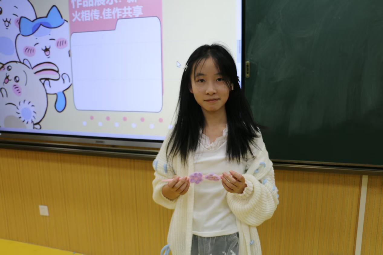 随后,活动进入核心创作环节,两位特邀手工达人登台,通过手把手示范、细致拆解步骤,向同学们传授扭扭棒的基础造型与创意组合技巧。从灵动的小花、呆萌的小动物到寓意独特的个性摆件,达人的精彩演示激发了同学们的创作灵感。