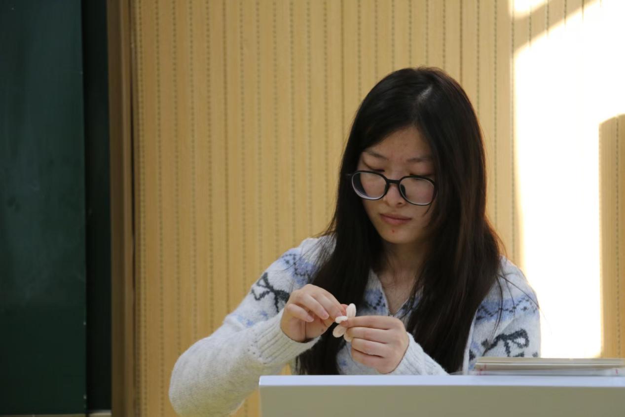 创作过程中,学子们或独自静心构思,将对资助关怀的珍视、对未来的美好憧憬融入指尖;或2-3人组队协作,相互交流想法、分工配合。现场工作人员全程巡回指导,及时为同学们解答材料使用、造型设计等方面的疑问,并提醒大家注意剪刀等工具的使用安全。50分钟的创作时间里,一根根色彩斑斓的扭扭棒在同学们手中巧妙变形,成为一件件承载心意的专属作品。