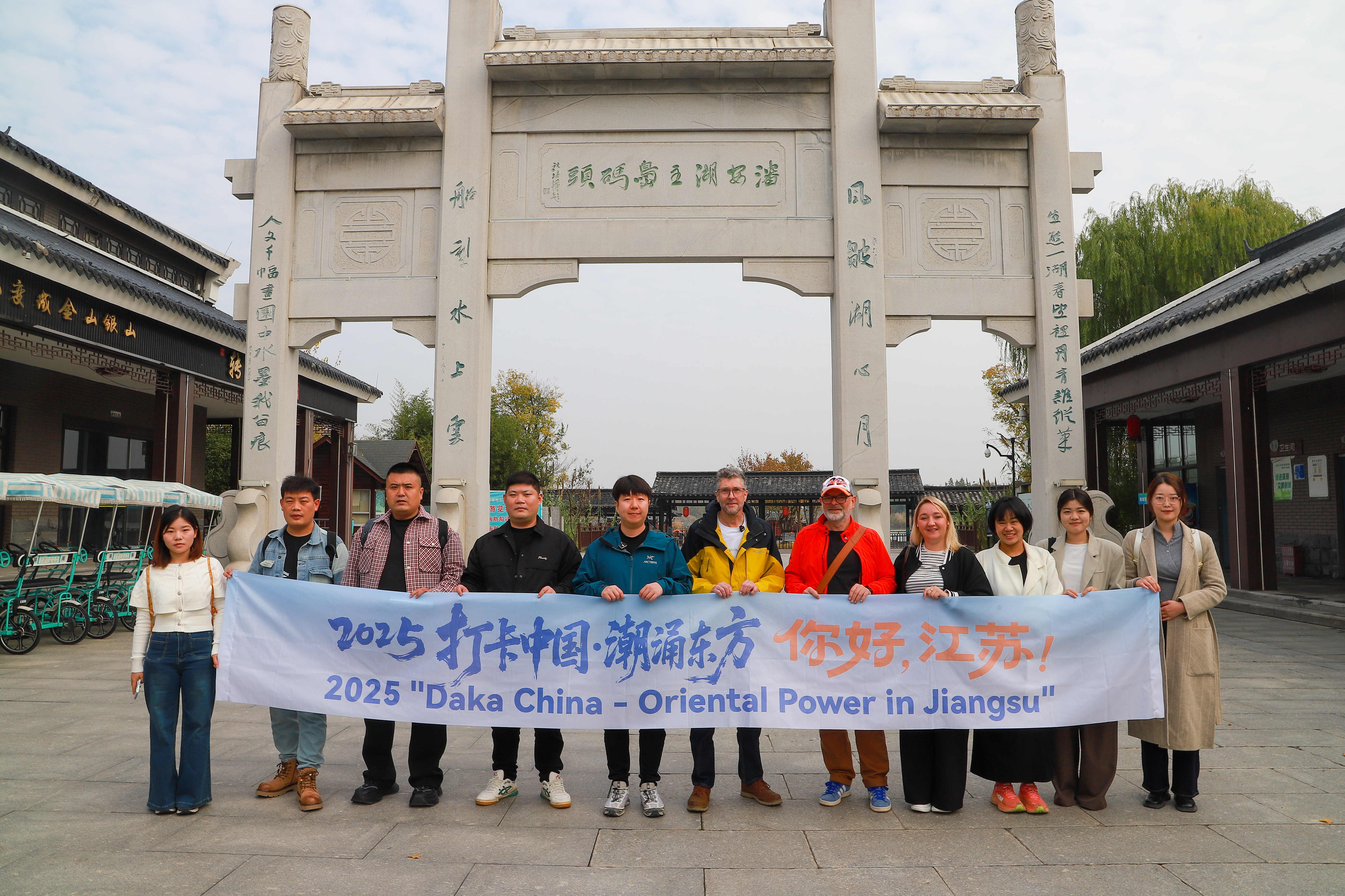 2025年11月11日至16日,由中央网信办指导,省委网信办和中央广播电视总台国际在线主办,淮安市委网信办、徐州市委网信办承办,淮安国际传播中心协办的“2025打卡中国·潮涌东方——你好江苏”网络国际传播活动圆满收官。此次活动中,来自英国、埃及、韩国、俄罗斯、泰国等国家的海外网红博主,携手中央广播电视总台多语种工作室双语主播,共同组成“专业打卡团”,深度走访徐州、淮安等地,全景式展现江苏在历史文化传承与现代产业发展方面的独特魅力。作为活动协办方紧密合作单位,我校商务英语学院选派和润廷、张梦茹老师全程跟团开展语言服务,承担了外事接待、现场翻译、文化传播素材搜集等核心工作,为活动的成功举办提供了强有力的保障,彰显了学院服务地方发展、助力对外传播的能力。