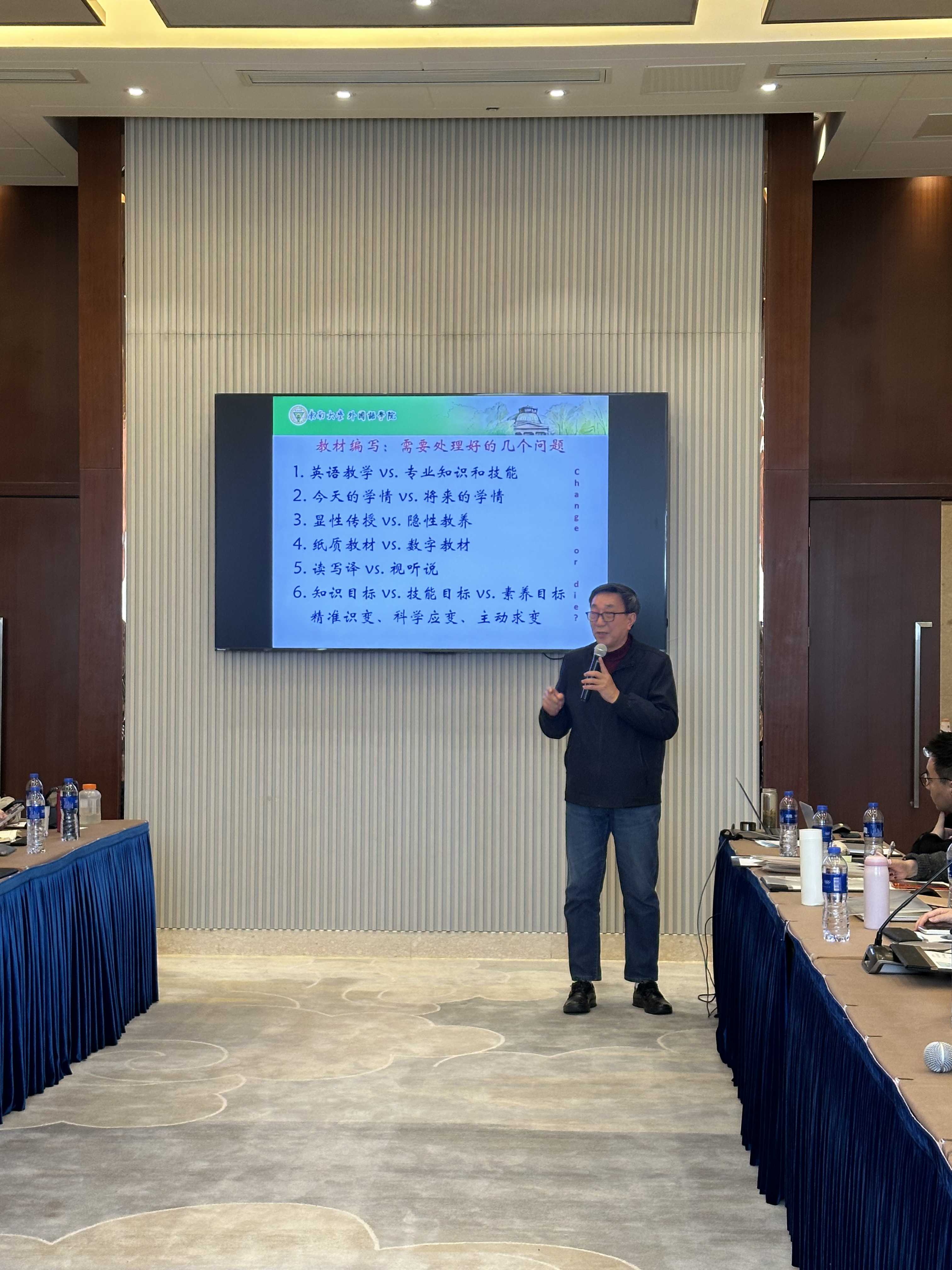活动首日上午,李霄翔教授作了题为《新时代数字教材建设原则与路径》的报告。报告深入探讨了教材研发如何守正创新、服务国家需要,并以《高职大学英语系列教程》为例,阐释了英语课程助力学生职场融入与高端技术人才培养的路径。他强调,教材应立足职场要素,以英语技能为抓手,以核心素养为基准,以职业素养为目标,通过数字化赋能,实现知识、技能、素养和文化元素的图谱化呈现。李霄翔还重点剖析了教材编写中需处理好的“静态与动态”、“通用与个性”、“单一与生态”等多组关系,并强调了主编领导力与团队协作的重要性。
