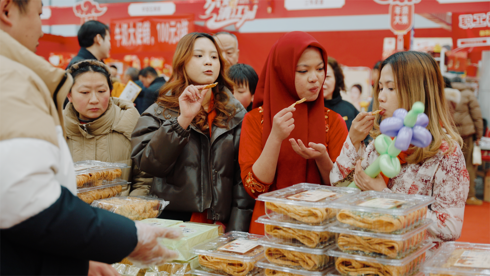 下午,“品淮扬年·赏运河情”校外沉浸式体验活动如期开启。国际教育学院教师带领留学生代表前往清江浦年货大集,沉浸式感受中国春节的市井烟火气。现场汉服展演、民俗演出精彩纷呈,留学生们边走边看,打卡各式年货摊位的同时,品尝了切糕、茶馓等淮安特色小吃,让大家直呼美味;还亲手体验了十八翻、拓印等趣味民俗活动,在动手实践中感受传统民俗的独特乐趣,深入了解年货市集背后的民俗文化底蕴。